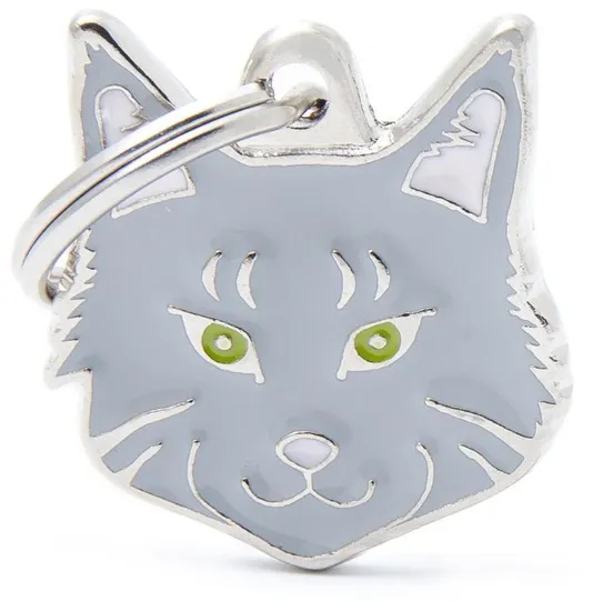 Medalha de Identificação Myfamily Friends Gato Maine Coon Malhado Prateado MF39