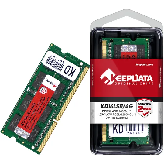 Especificações de Memória Ram para Notebook Keepdata de 4GB KD16LS11/4G DDR3L/1600MHZ - Verde