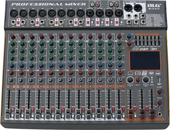 Mesa de Som BLG Mixer de 12 Canais M-12 K12 Bivolt