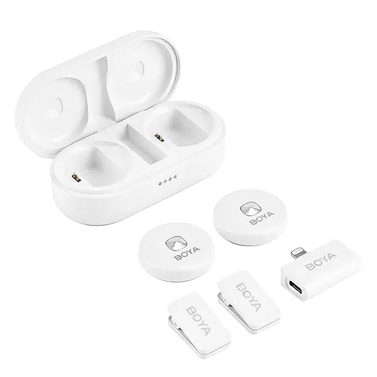 Microfone Lapela Boya Omic-D Lighting Sem Fio para iPhone - Branco (2TX+1RX)