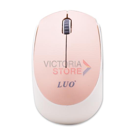 Mouse Dpi Sem Fio Wireless Optical Luo LU-3046 / 1000 Dpi / USB-A - Rosa Claro/Blanco