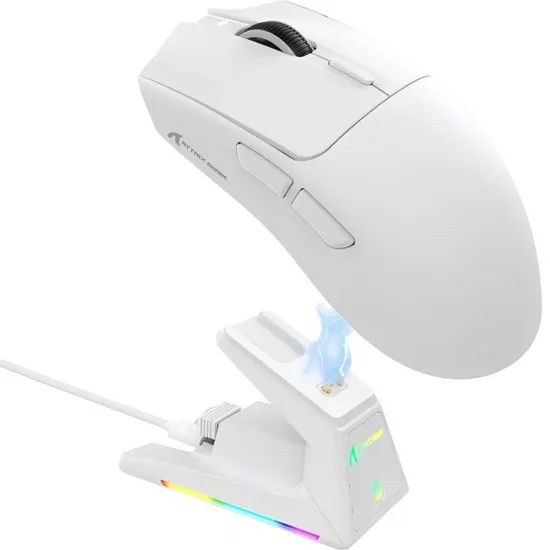 Mouse Gamer Sem Fio Attack Shark X1 PAW-3395PRO Trimodo USB-C BT 2.4GHZ White com Base