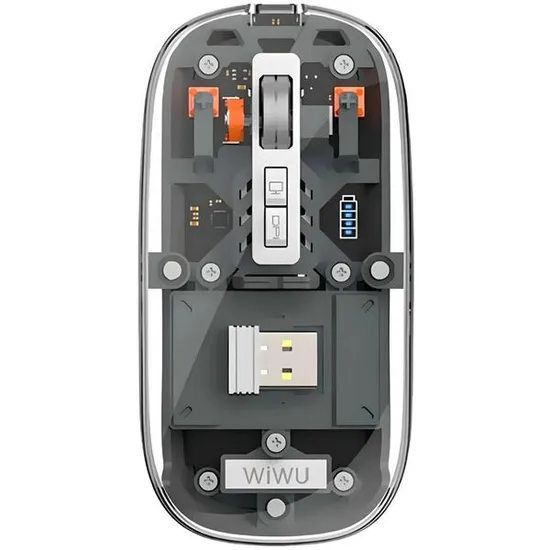 El mouse inalámbrico Wiwu Crystal Magnetic WM105 tiene un diseño único y atractivo, con un cuerpo ultrafino y transparente que deja ver su mecanismo interno. Además, cuenta con una placa de cobertura magnética que se puede separar fácilmente en cualquier momento, lo que facilita su limpieza y mantenimiento.