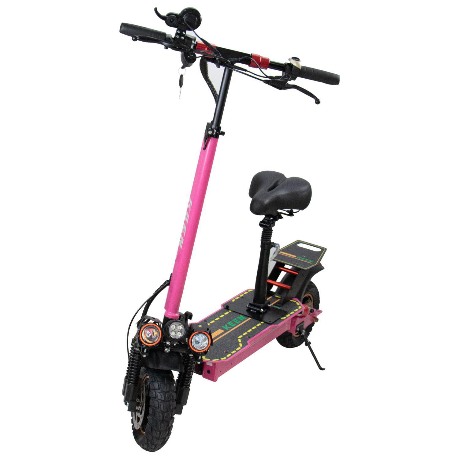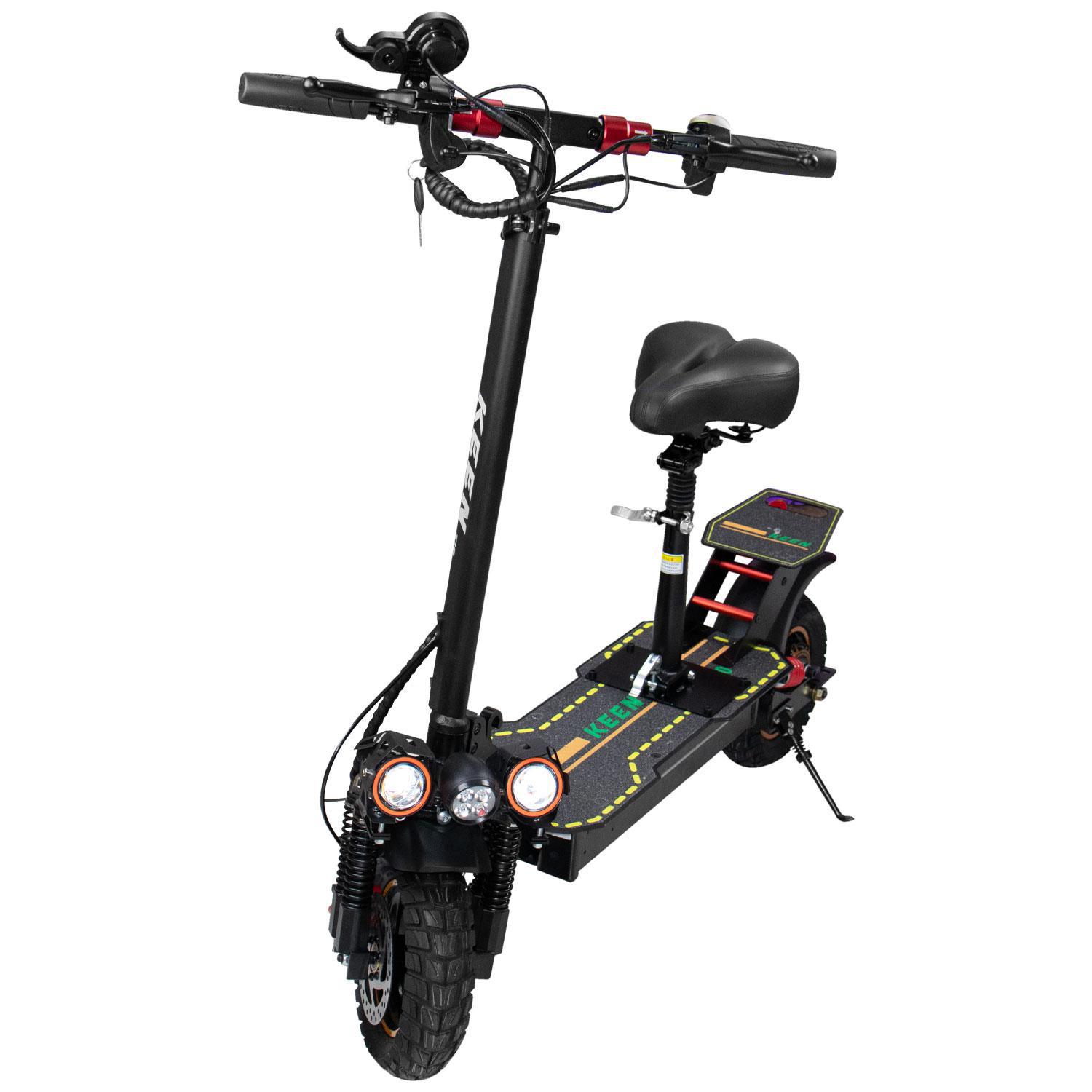 O Patinete Elétrico Keen S10 tem um design compacto e elegante com assento, sendo uma opção ideal para aqueles que procuram uma experiência de condução confortável e versátil. Possui um motor potente de 500 Watts, podendo atingir velocidades de até 40 Km/h, o que permite se deslocar rapidamente pela cidade.