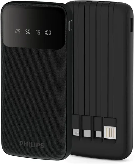 El Philips DLP7710 es un power bank de alta capacidad con diseño compacto y elegante, ideal para cargar smartphones, tablets, auriculares y otros dispositivos móviles. Con 10.000 mAh, permite múltiples cargas completas y cuenta con dos puertos USB para cargar dos dispositivos al mismo tiempo.