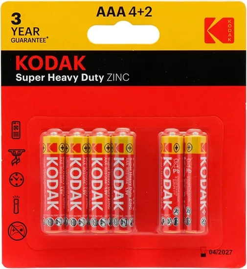 Pilha Kodak Super Heavy Duty Zinc - AAA 4+2 (6 Unidades)
