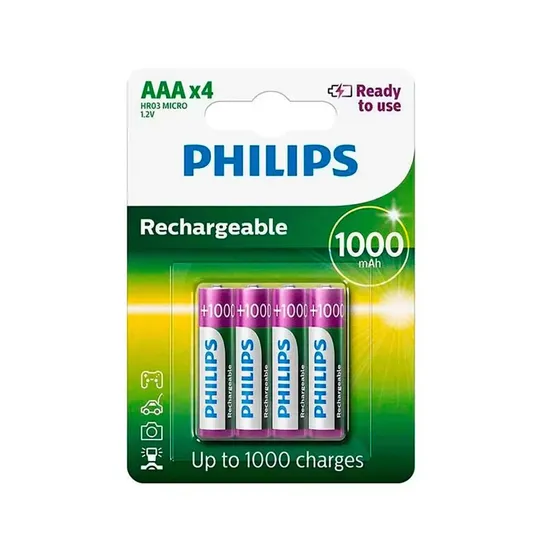 Pilha Philips AAA Recarregável R03B4RTU10/97 1000 Mah - 4 Unidades