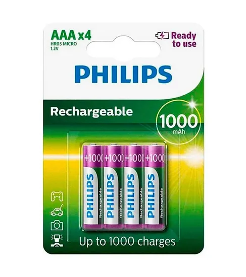 Especificações de Pilha Philips Recarregável AAA 1000-Mah - com 4 Unidades (R03B4RTU10/97)