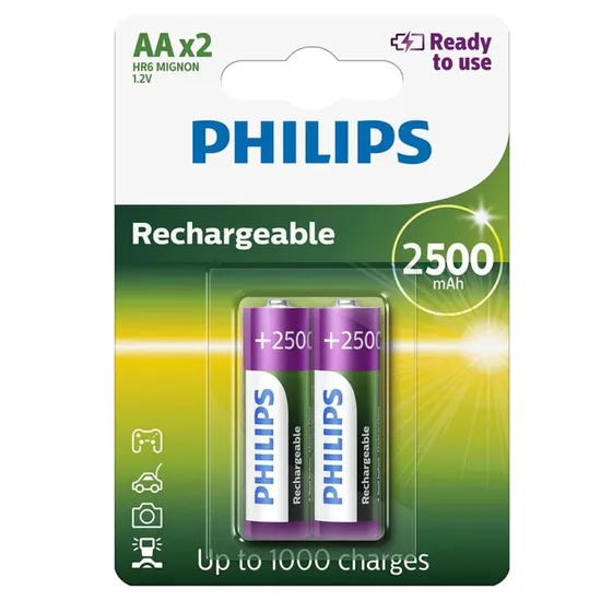 Pilha Recarregavel Philips AA 2500MA / 2 PCS