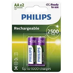 Pilhas Recarregável Philips AA com 2 Pilhas / 2500MAH - R6B2RTU25/97