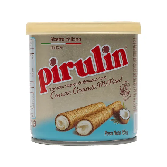 Compra online válida apenas dentro do Paraguai.Pirulin Barquillos Crema de Coco 155GR Lata