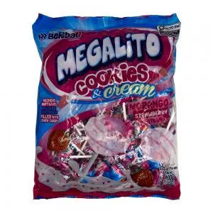 Compra online válida apenas dentro do Paraguai.Pirulito Cookies Morango Megalito Berbau Pacote 1KG