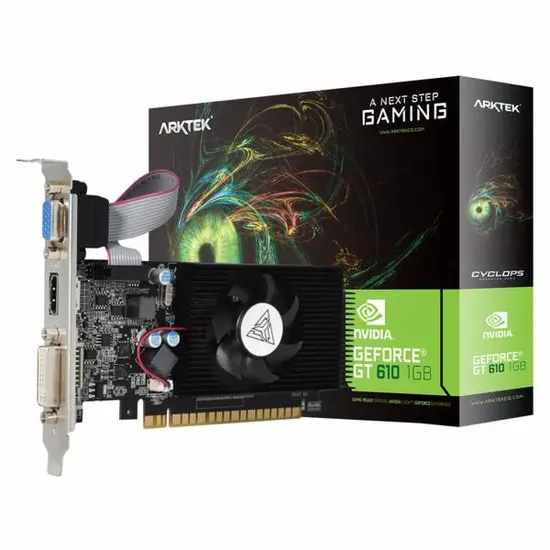 Placa de Video Arktek Cyclops 1GB Nvidia Geforce GT610 GDDR3 AKN610D3S1GL1 64BITS 625MHZ HDMI, DVI, VGA(D-Sub)