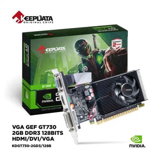 Placa de Video Keepdata Geforce GT 730, 2GB DDR3, 128BITS, 1X DVI 1X HDMI 1X VGA, KDGT730-2GD3