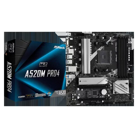 Placa Mãe Asrock A520M PRO4 DDR4 Socket AM4 Chipset AMD A520 Micro ATX