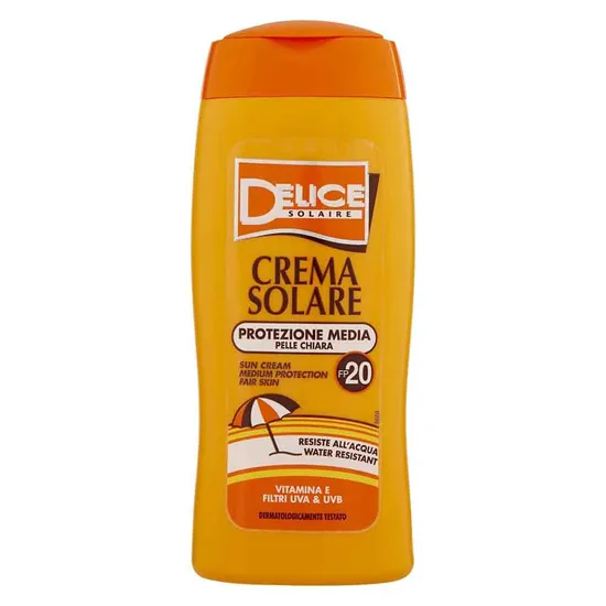 Compra online válida apenas dentro do Paraguai.Protetor Solar Delice Solaire Crema Solare Protezione Media Pelle Chiara - FP20 - 250ML