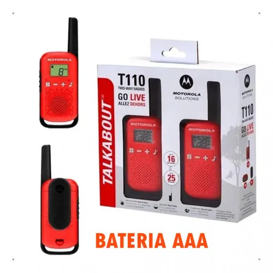 Especificações de Radio Walkie Talkie Motorola T110 25KM/16MILHAS FRS/GMRS -(BK)