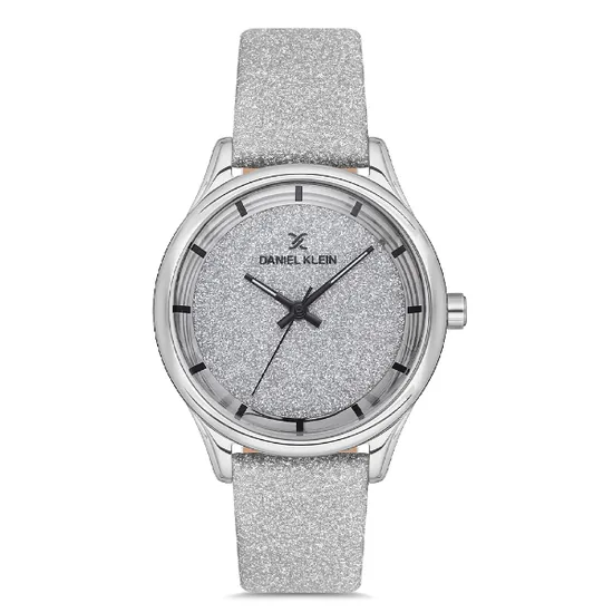 Relógio Analógico Feminino Daniel Klein DK.1.12667-1 Premium Ladies / Pulseira de Couro - Prata Glitter