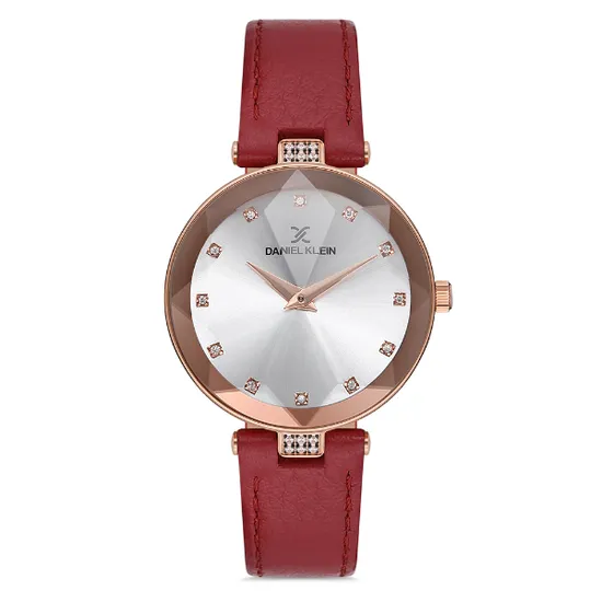 Relógio Analógico Feminino Daniel Klein DK.1.12728-2 Premium Ladies / Pulseira de Couro Genuino - Vermelho/Rose Gold