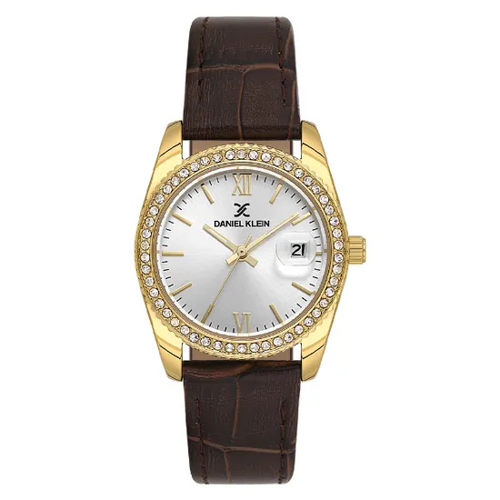 Relogio Analogico Feminino Daniel Klein DK.6.14030-3 Premium Lady / Pulseira de Couro - Marrom/Dourado