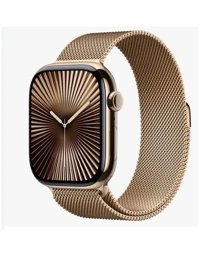 Relogio Apple Watch S10 46MM Gold Ti Starlight SB Milanese Loop M/L Cel MWYY3