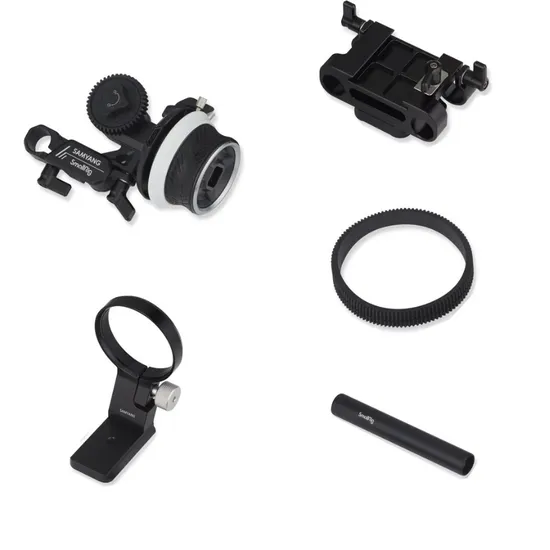 O kit é compatível com lentes Samyang com diâmetro de montagem de 62 mm. Recomenda-se o uso com a lente Samyang VDSLR Sony E-mount e a lente AF 24-70mm F2.8 FE. O dial é compatível com engrenagens intercambiáveis M0.8-43T/43T/38T e pode ser montado à esquerda ou direita do follow focus para um controle mais preciso.