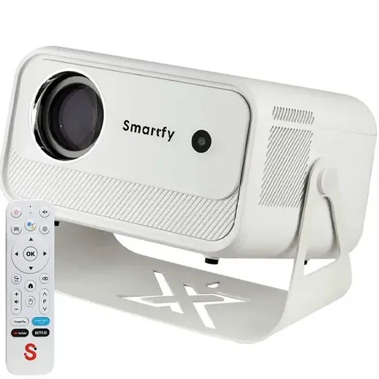 El Smartfy Proyector PG03W Android HD/HDMI/Wi-Fi MagisTV Blanco es una excelente opción para quienes buscan entretenimiento completo con funciones inteligentes y gran versatilidad.El Proyector Smartfy es un proyector inteligente de gama de entrada que destaca por su sistema operativo Android integrado, conectividad Wi-Fi y diversas opciones de interfaz, lo que lo hace versátil para uso doméstico y de entretenimiento.