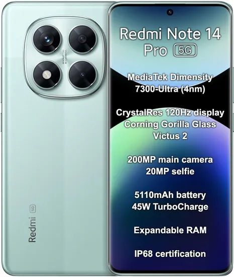 Compra online válida apenas dentro do Paraguai.Smartphone Xiaomi Redmi Note 14 Pro 5G Dual Sim 6.67" 12GB/512GB Green (Global)