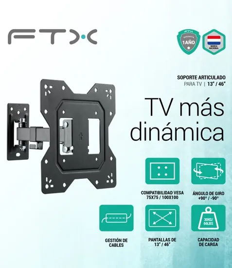 Soporte p/TV FTX FTX68-221 23 A 43 30KG/Inclinable 8°/Articulado Giro 90°