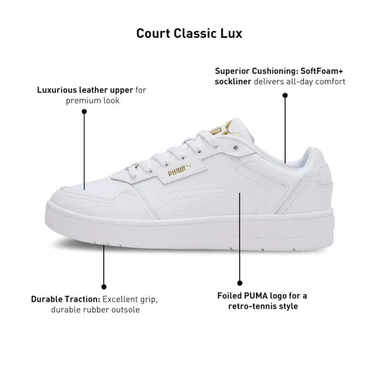 Especificações de Tênis Puma Court Classic Lux Casual Feminino 395019-01