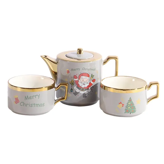 Tetera Navideño c/Tazas Gris 3 PCS
