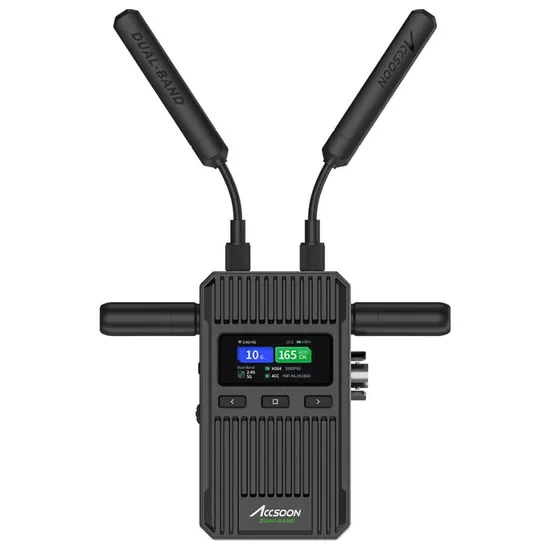Expandindo a tecnologia de banda dupla de 2.4 e 5 GHz da Accsoon e apresentando um novo design de antena, o CineView 2 pode transmitir e receber sinais de vídeo e áudio em 1080p60 de forma contínua em um alcance de linha de visão de até 1500', mantendo uma baixa latência inferior a 50 ms.