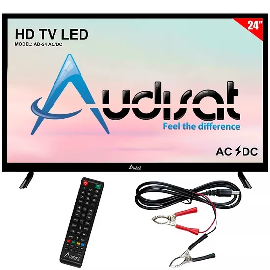 TV LED 24" Audisat AD-24 Ac/DC (2026) HD com Conversor Digital (1 Ano de Garantia)