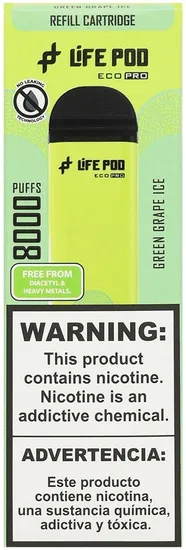 Especificações de Vape Descartável Life Pod Eco Pro - Green Grape Ice - 8000 Puffs