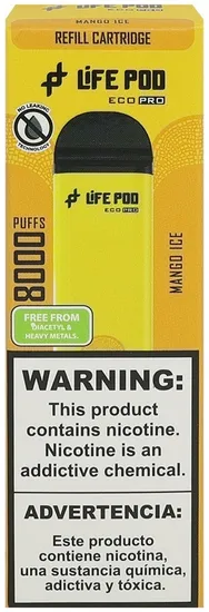 Especificações de Vape Descartável Life Pod Eco Pro - Mango Ice - 8000 Puffs