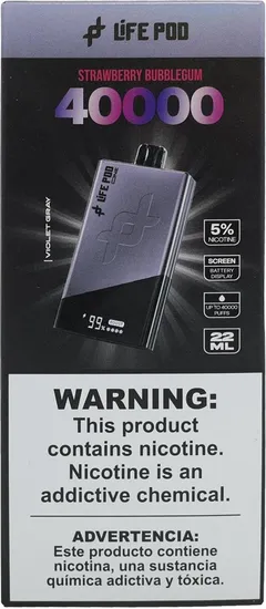 Vape Descartável Life Pod Violet Gray - Strawberry Bubblegum - 40000 Puffs