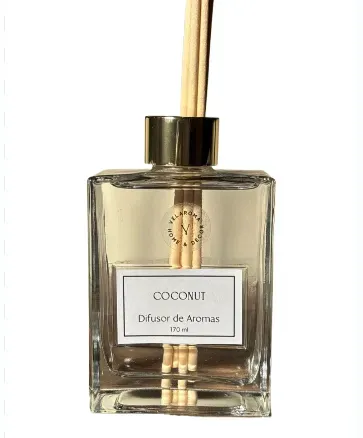 Difusor aromático de gran tamaño con fragancia tropical de coco, ideal para perfumar espacios amplios de forma continua y elegante. Su presentación en frasco de vidrio con varillas de rattan permite una difusión natural y prolongada del aroma, sin necesidad de electricidad ni calor. Aporta frescura, calidez y una atmósfera relajante, perfecta para el hogar u oficina.