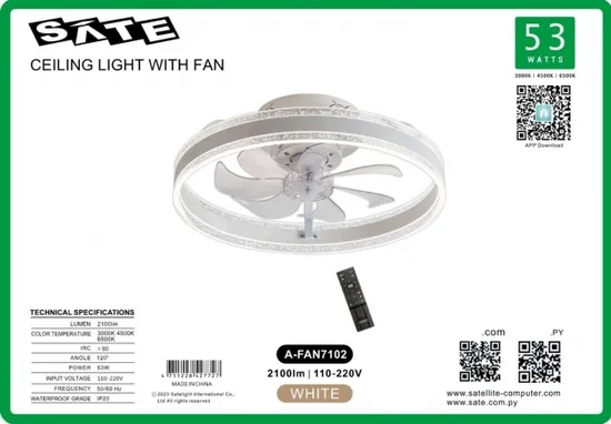 Ventilador de Teto Sate c/Luminaria A-FAN7102 53W