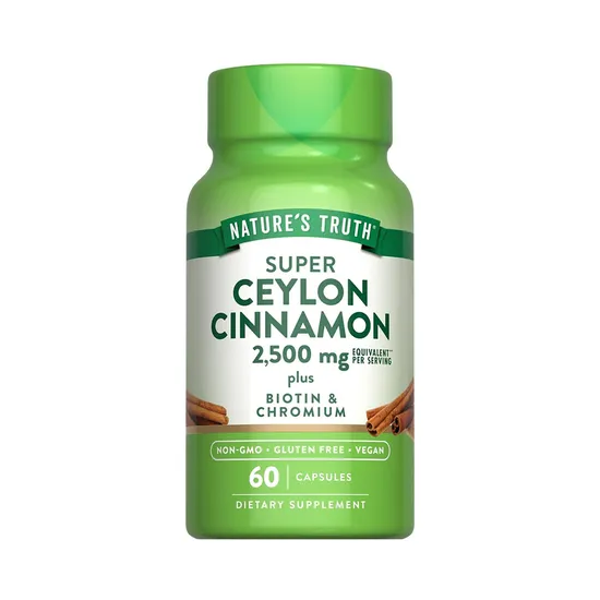 Vitamina Nature's Truth Super Ceylon Cinnamon Plus Biotin & Chromium 2500MG 60 Cápsulas