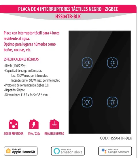 Zigbee Homie Esp Touch 4 Int. HSS04TR-BLK Black